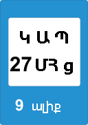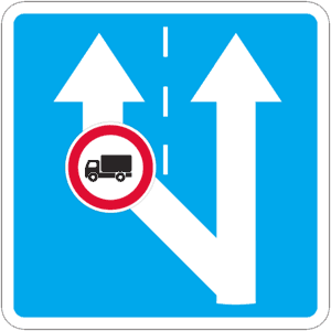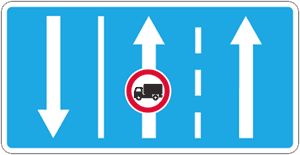 «Բեռնատար ավտոմոբիլներով վազանցն արգելվում է». բոլոր տեսակի տրանսպորտային միջոցներով վազանցն արգելվում է` բացառությամբ մոտոցիկլների, թեթև մարդատար ավտոմոբիլների, ավտոբուսների և մինչև 3,5 տոննա թույլատրելի առավելագույն զանգված ունեցող բեռնատար ավտոմոբիլների. | ||||||