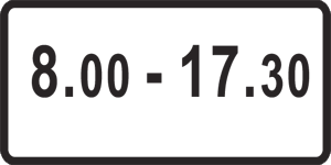 8.5.4, 8.5.5 - 8.5.7. «Գործողության ժամանակ». 8.5.4 ցուցանակը տեղեկացնում է օրվա այն ժամերը, իսկ 8.5.5 - 8.5.7 ցուցանակները` նաև շաբաթվա այն օրերը, որոնց ընթացքում նշանը գործում է. | ||||||