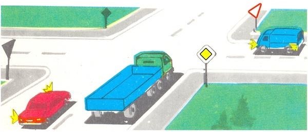 23. Կապույտ ավտոմոբիլը խաչմերուկը կանցնի՝